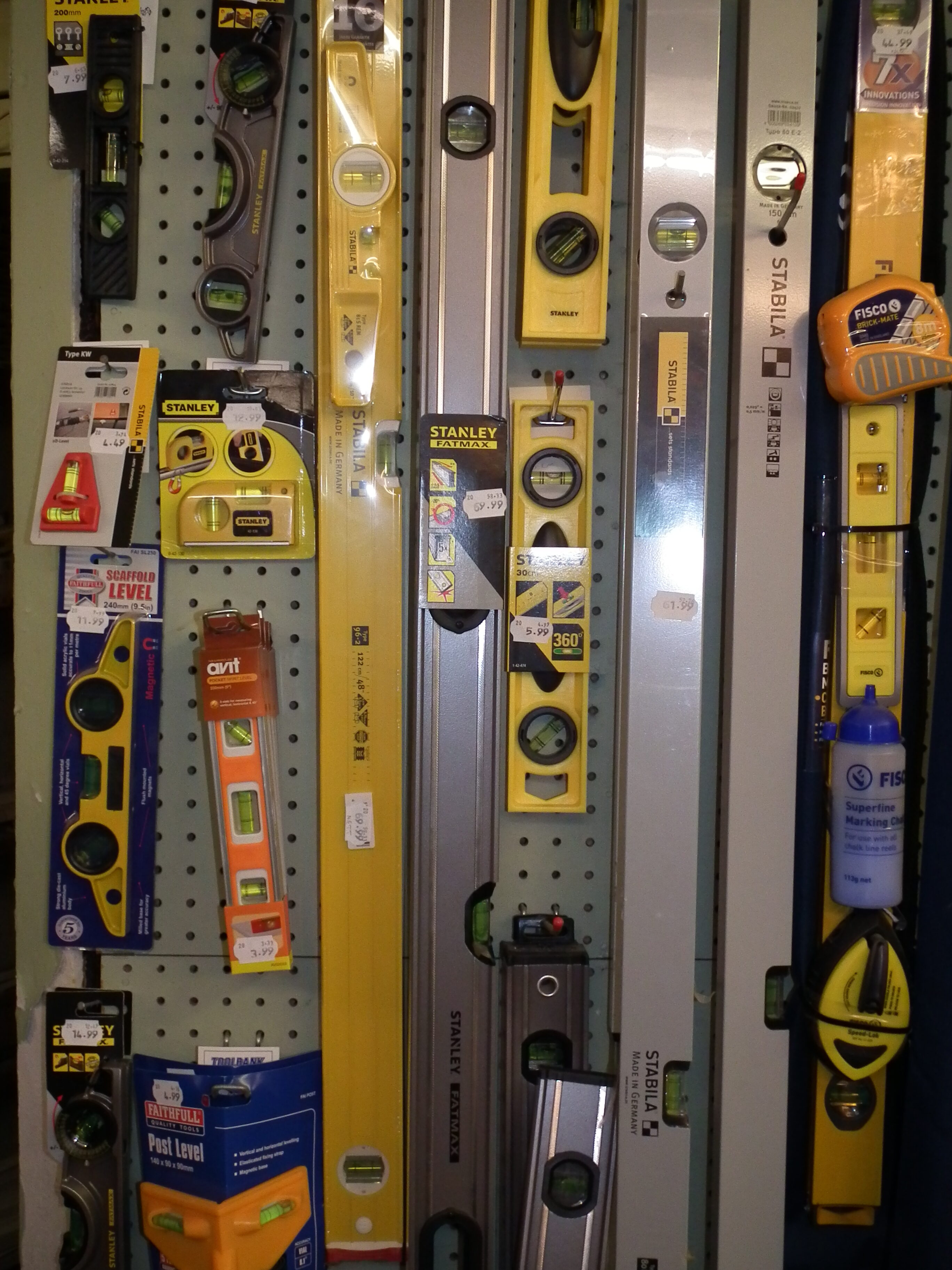 Screwdrivers, Bradawls, Spirit Levels, Drill bits, Wood Bits, Chucks, Saws, Saw Blades, Jigsaw Blades, Knives, Hammers, Spanners, Sockets, Hammers, Wrenches, Mole Grips, Stilsons.